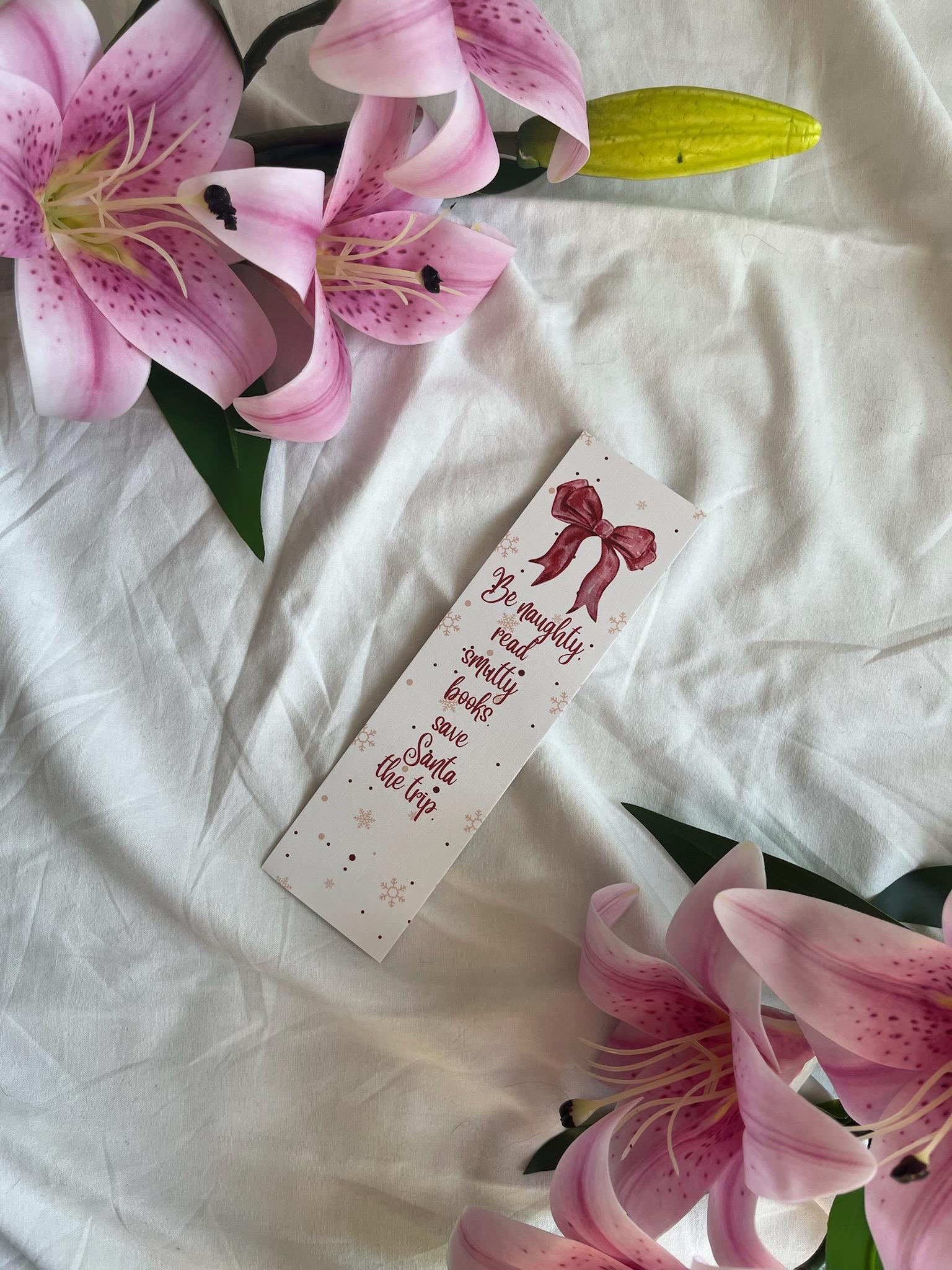 Be naughty read smutty books save Santa the trip Bookmark > The option to add a beaded cord.