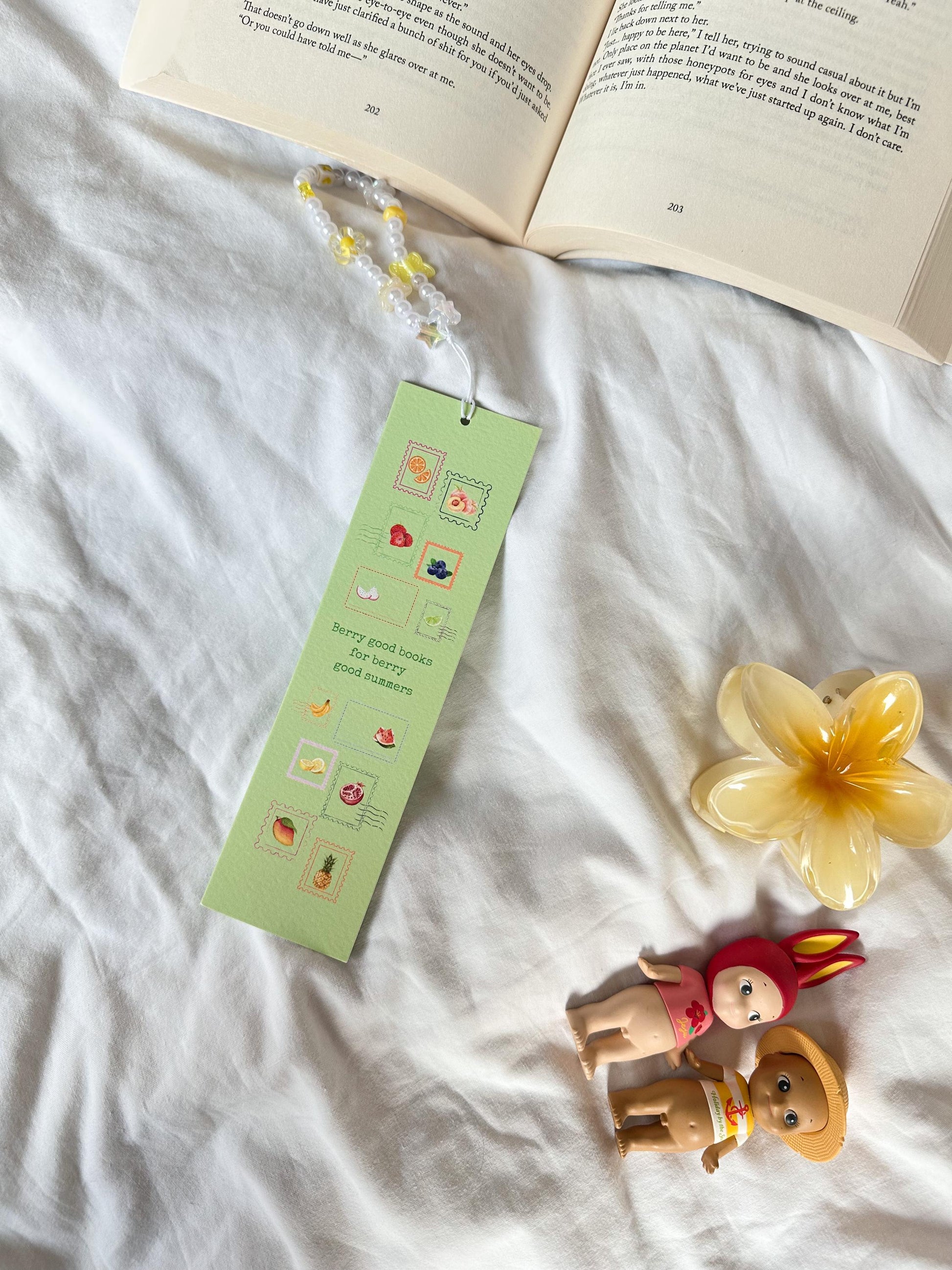 Berry good books for berry good summers bookmark > The option to add a beaded cord.