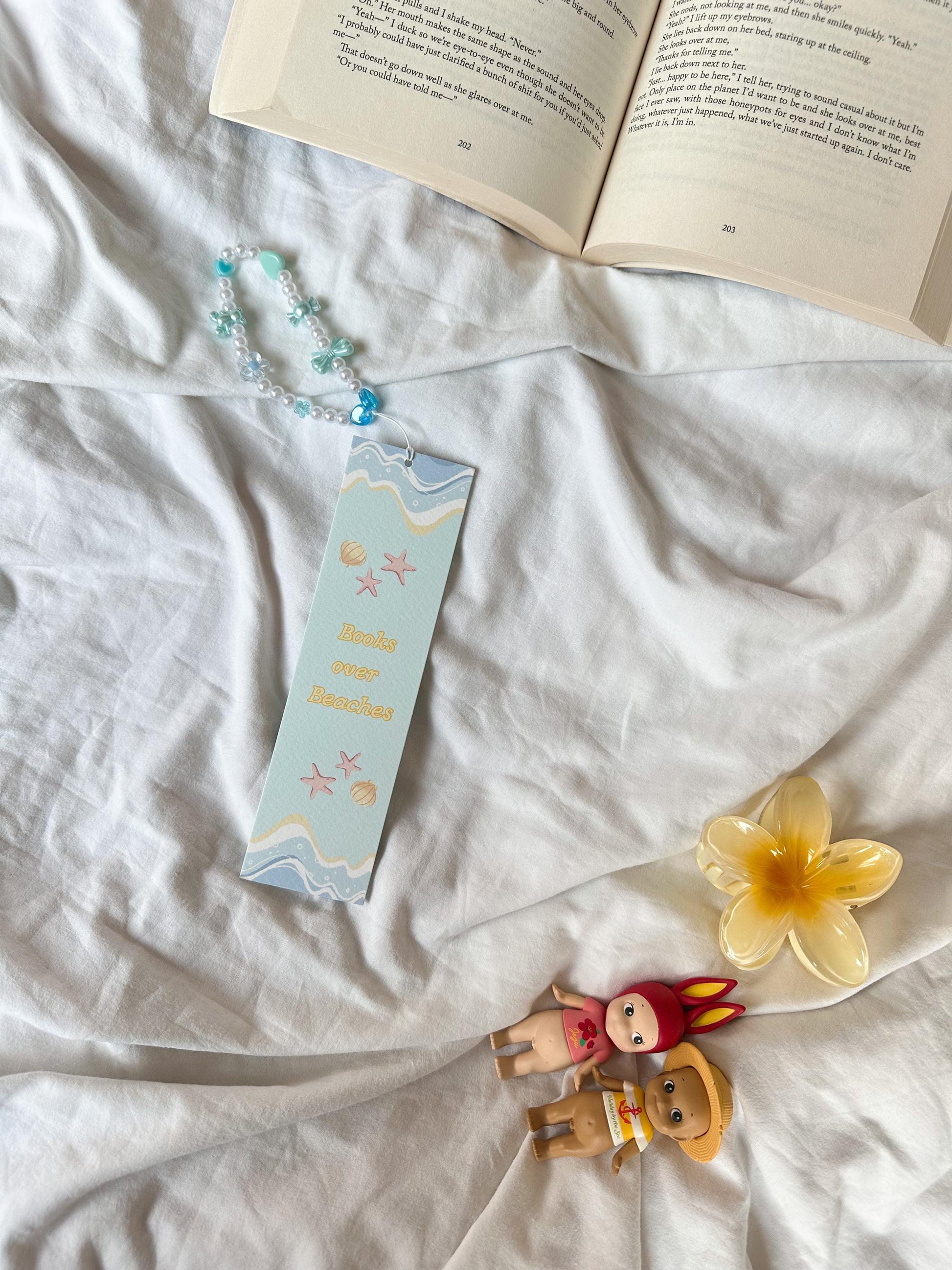 Books over beaches/plot twists hotter than July bookmark > The option to add a beaded cord.