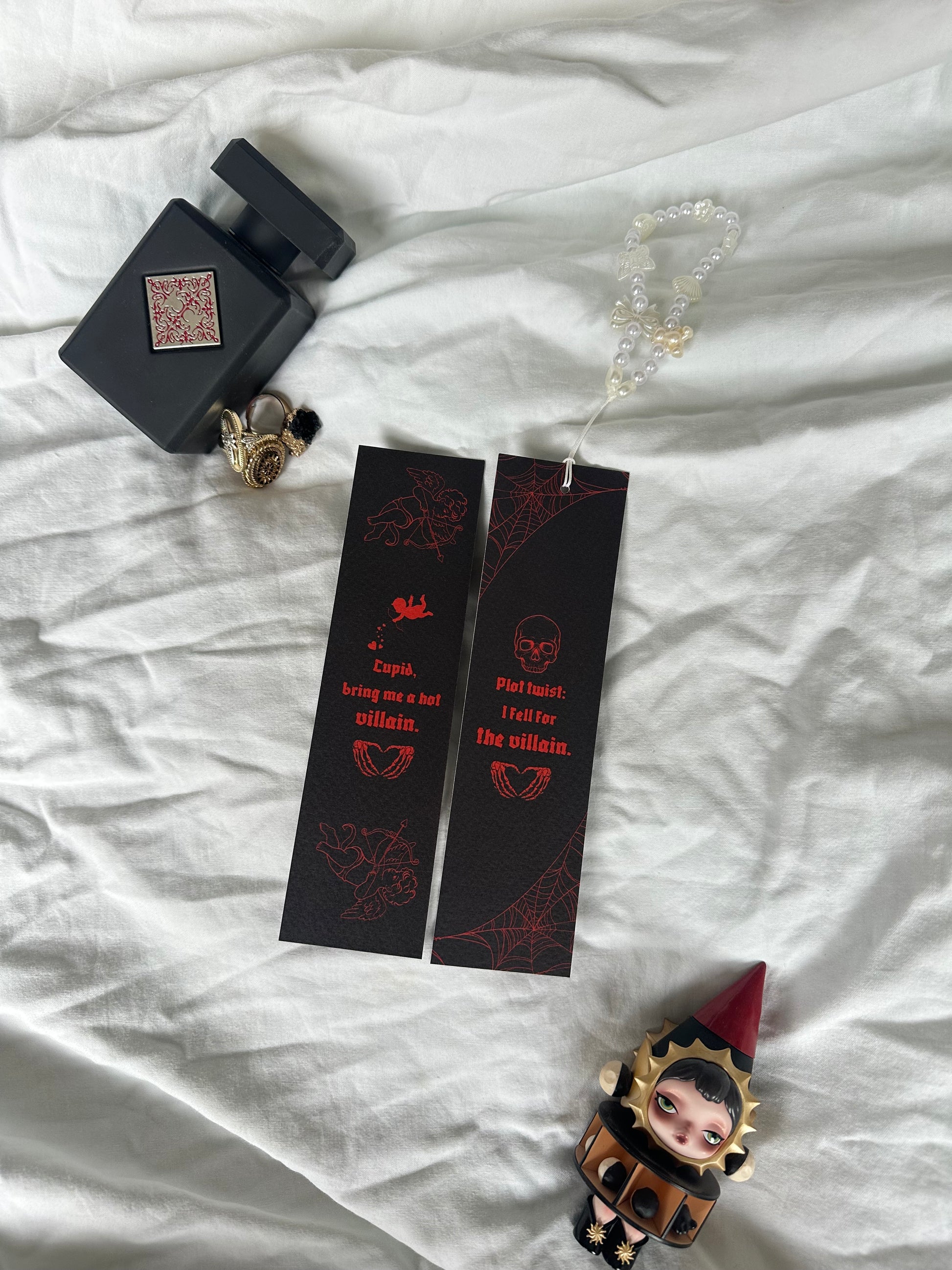 Plottwist I fell for the villain Bookmark > The option to add a beaded cord.