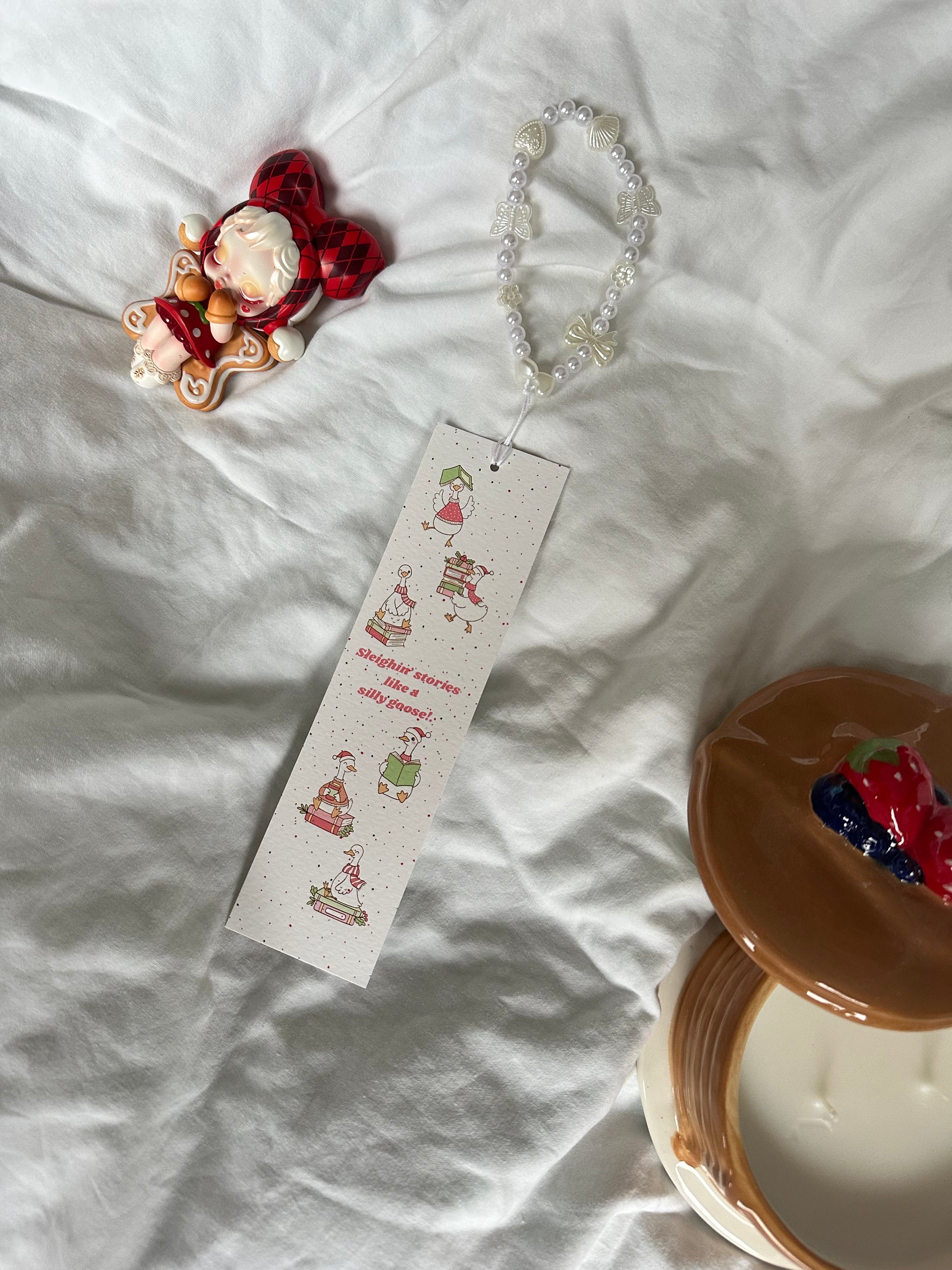Sleighing stories like a silly goose bookmark > The option to add a beaded cord.