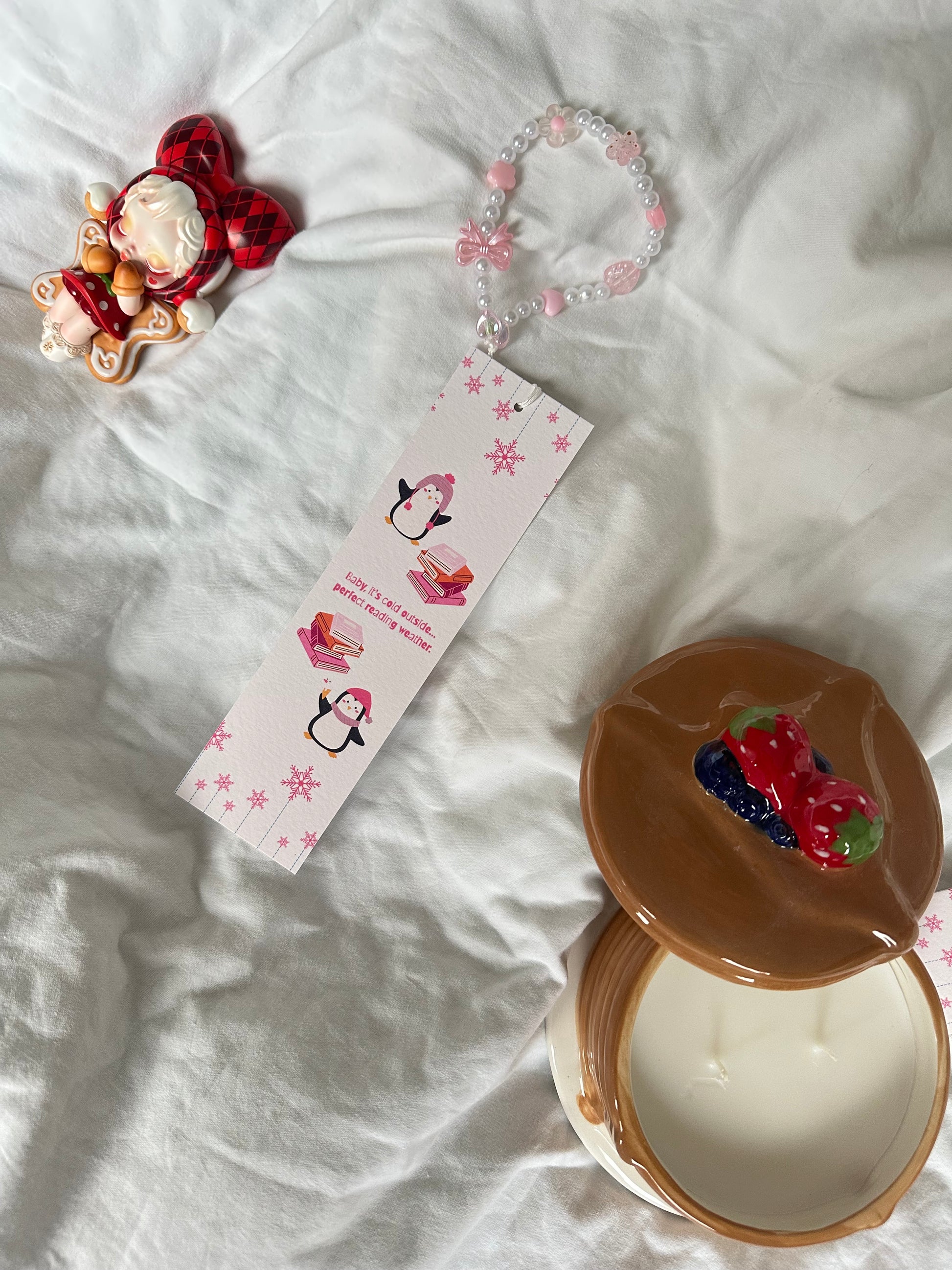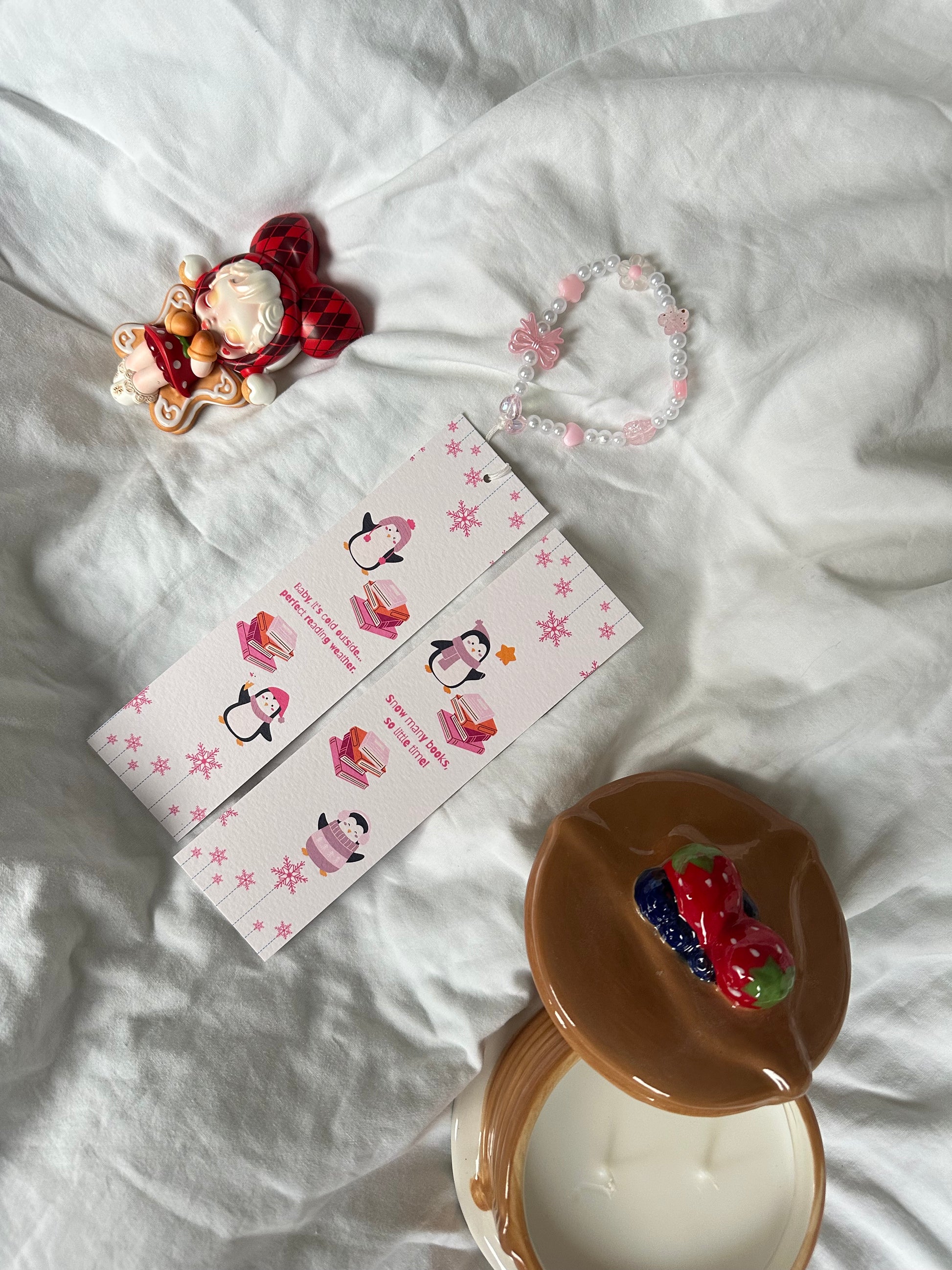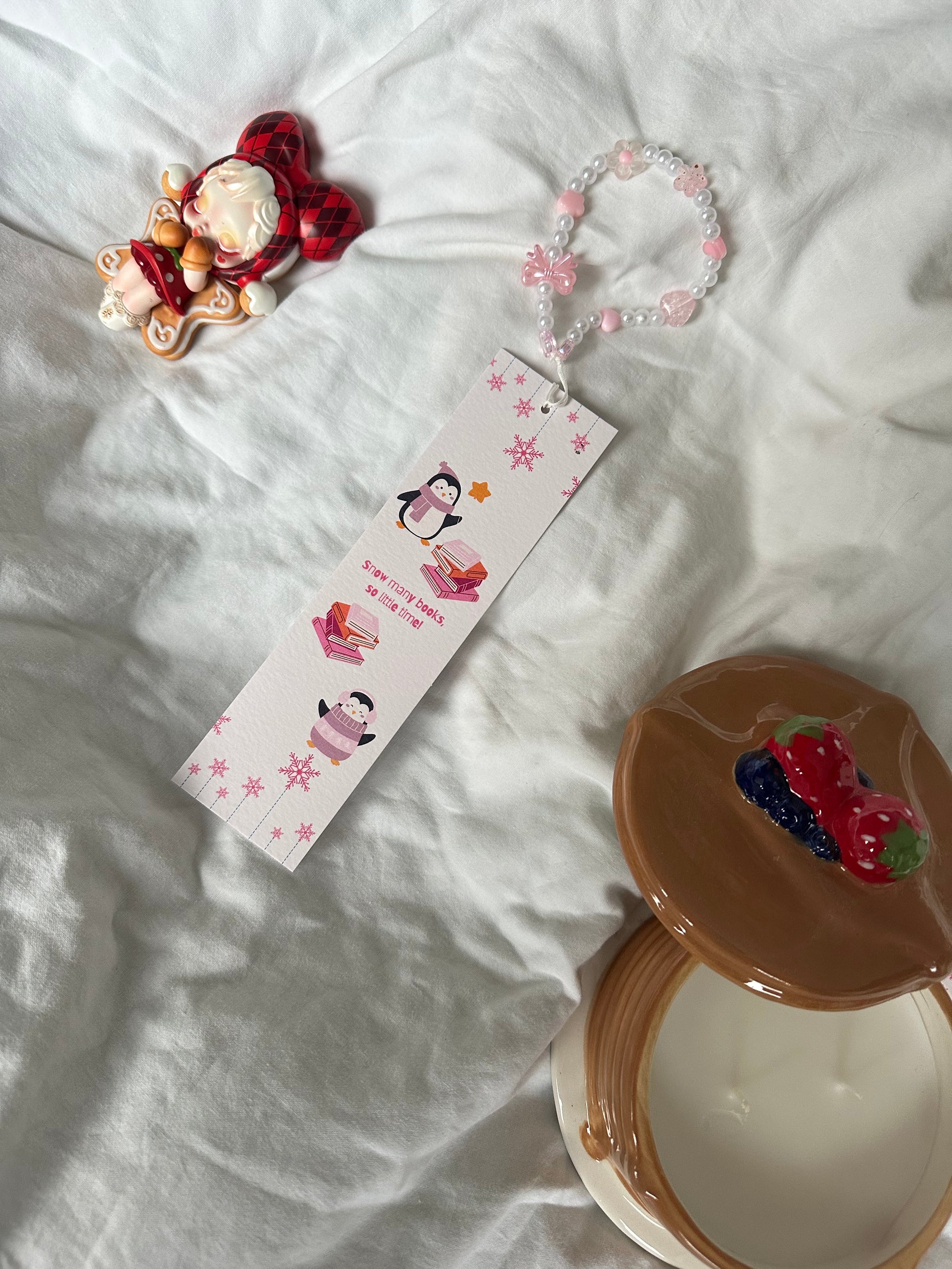 Snow many books so little time bookmark > The option to add a beaded cord.